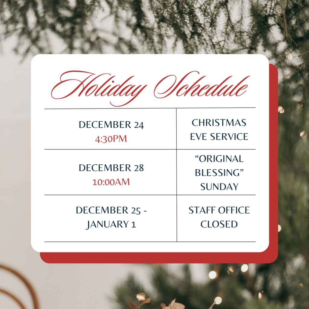 This is an all-ages service, meaning there will be no YouthSpirit dismissal. There will also not be a staffed nursery during the service. As with previous years, we will have an activity table set up in Bell Hall who prefer to keep their hands and minds busy during service.